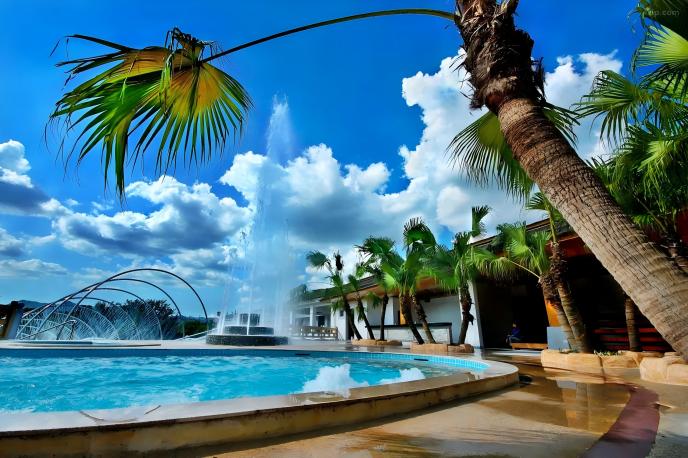 锦江温泉露天温泉区环境优美自然,风景怡人。泉水清澈、贯底、晶莹爽滑。含偏多种微量矿物质元素,其中硅酸、氟、氡这三种元素均达国家安全标准,属全国罕有,被誉为“三料”温泉。锦江温泉以动感温泉为主题,创有温泉冲浪、温泉漂流、超声波按摩喷泉、冷热瀑布等。国家AAAA景区。配套:温泉冲浪、温泉漂流泳道、室内室外游泳池、冰泉、温泉瀑布、20个康养温泉池,一共有77个大中小温泉池、酒店住宿、私汤园林别墅、餐饮、商务会议室、大型宴会厅、SPA、KTV、烧烤场、篮球、网球、桌球、兵兵球场、充电桩两个免费停车场等设备设施!
