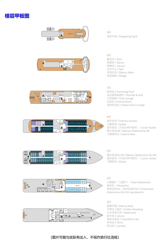 √邮轮设备设施和服务及极地目的地的介绍来源于参考材料,如与实际有出入不视作旅行社违规。