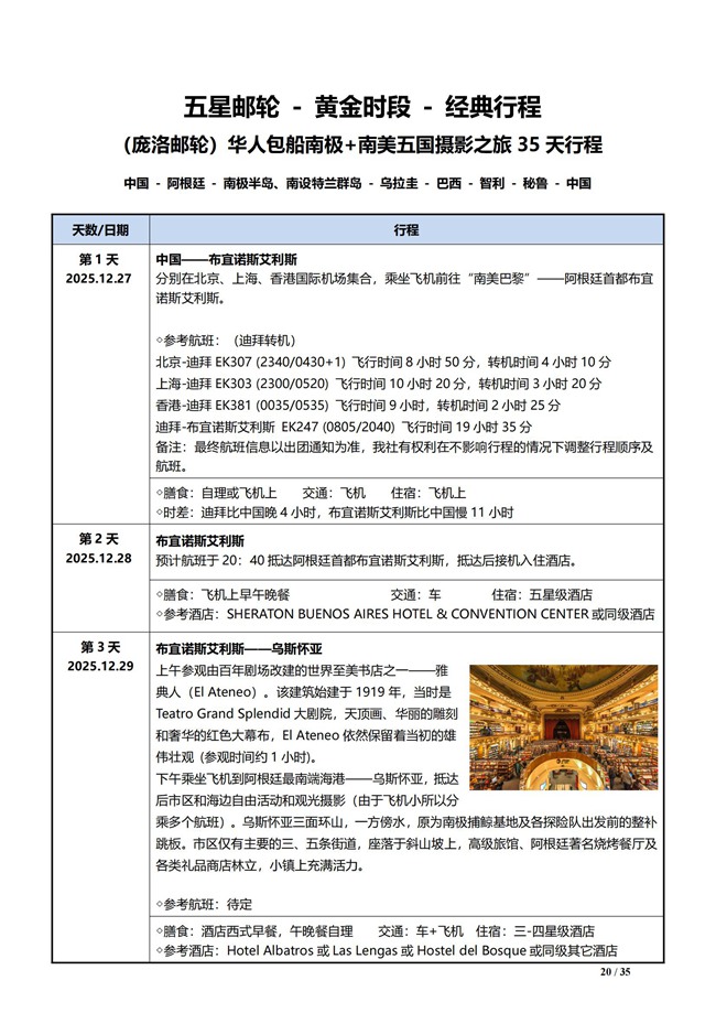 【庞洛邮轮】包船南极南美5国,阿根廷,乌拉圭,巴西,智利,秘鲁 35 天团 2025年12月27日北京,上海,香港三地出发,五星邮轮!黄金时段 !精品行程 |