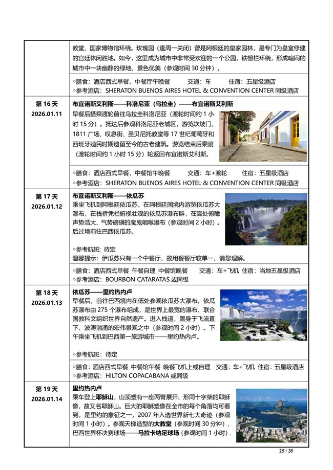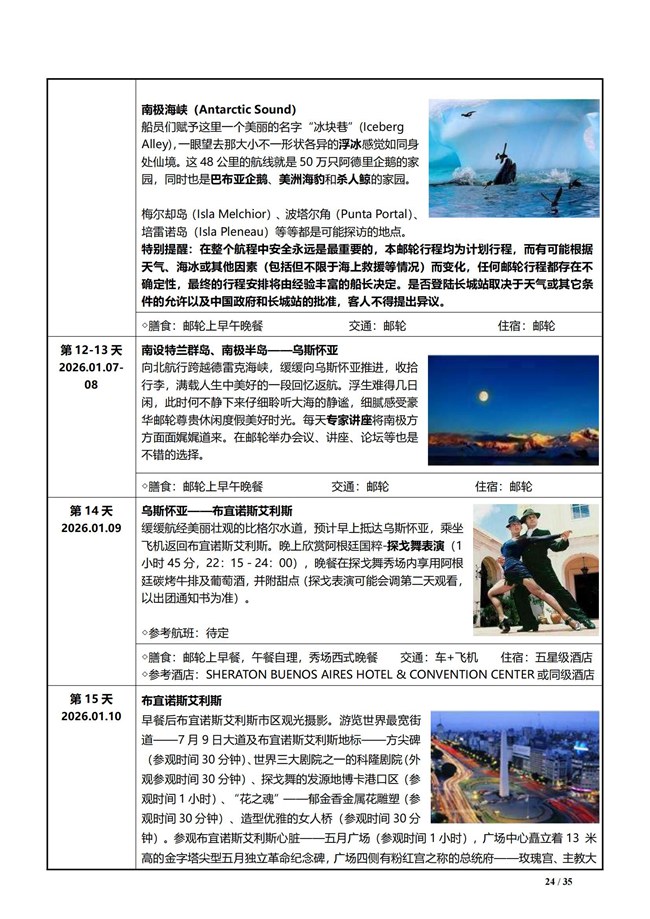 第 14 天 2026.01.09 乌斯怀亚 - 布宜诺斯艾利斯 早上抵达乌斯怀亚离船,乘坐飞机返回