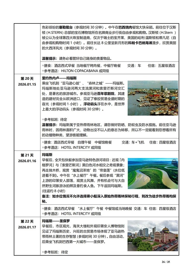 第 20 天 2026.01.15 里约热内卢 - 玛瑙斯 乘坐飞机到玛瑙斯,抵达后市区观光。