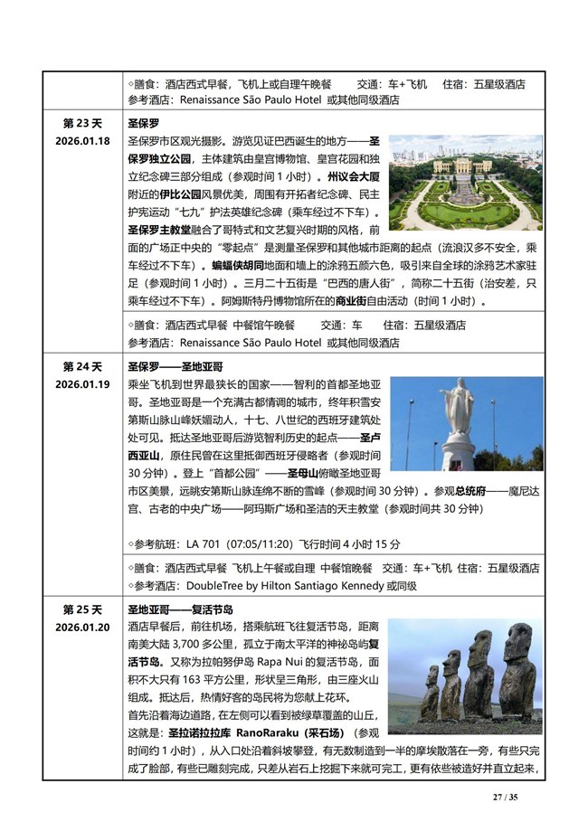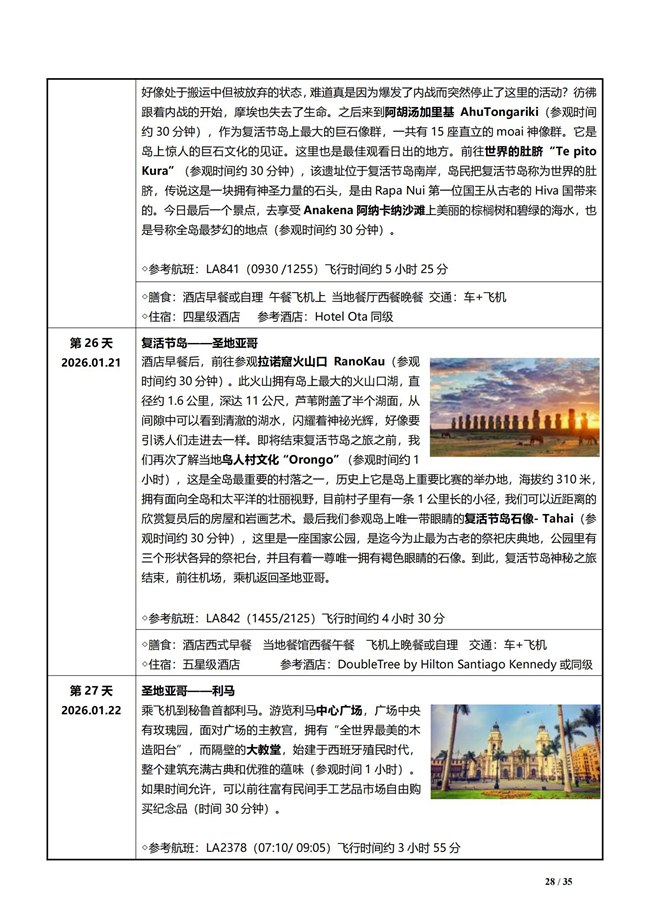 第 26 天 2026.01.21 复活节岛 - 圣地亚哥 复活节岛观光摄影。下午乘坐飞机返