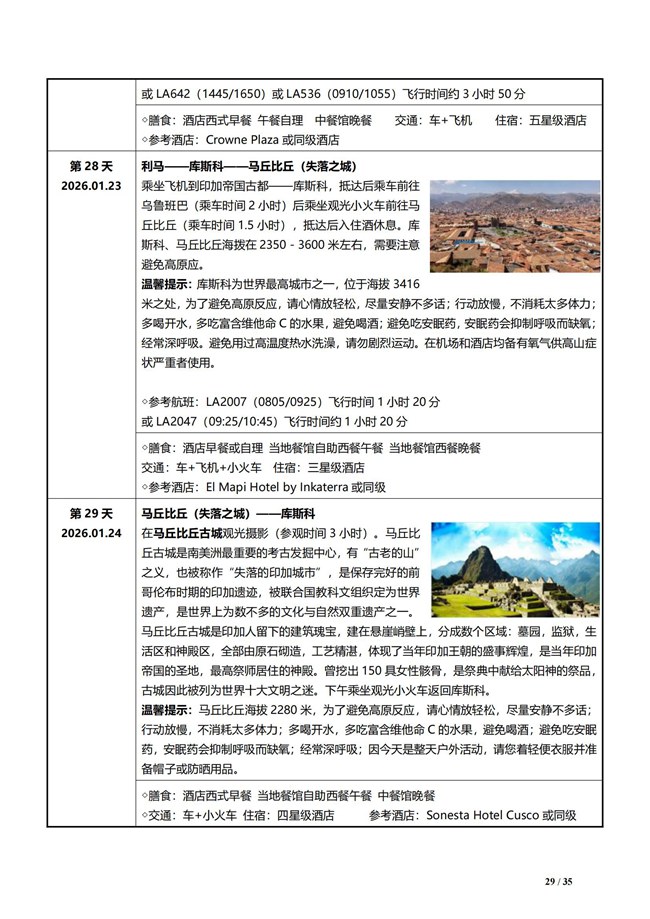 第 28 天 2026.01.23 利马 - 库斯科 - 马丘比丘 乘坐飞机到利马古都库斯科,后乘坐