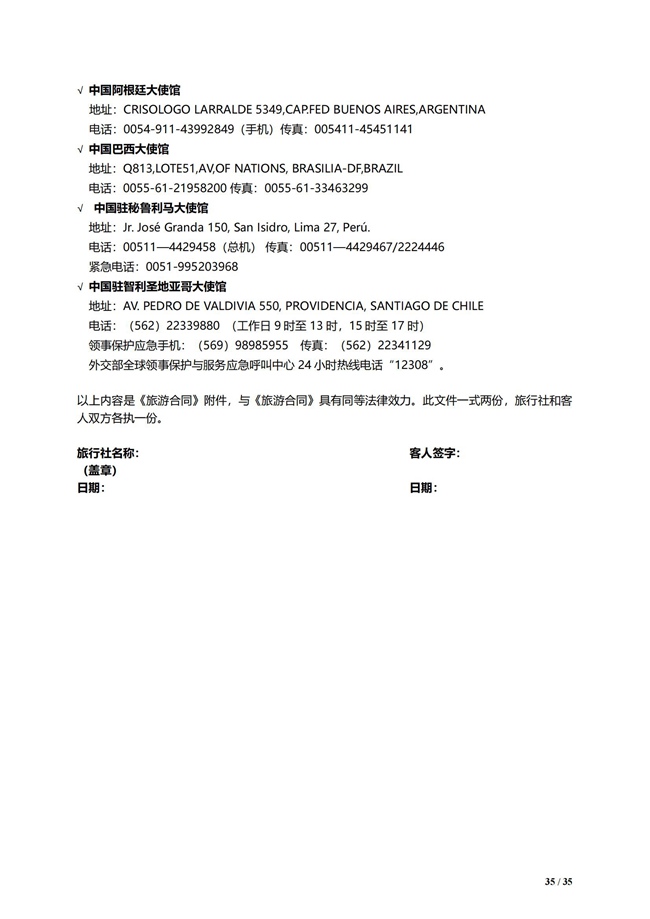 此文件作为《旅游合同》的附件与《旅游合同》具有同等法律效力。此文件一式两份,双方各