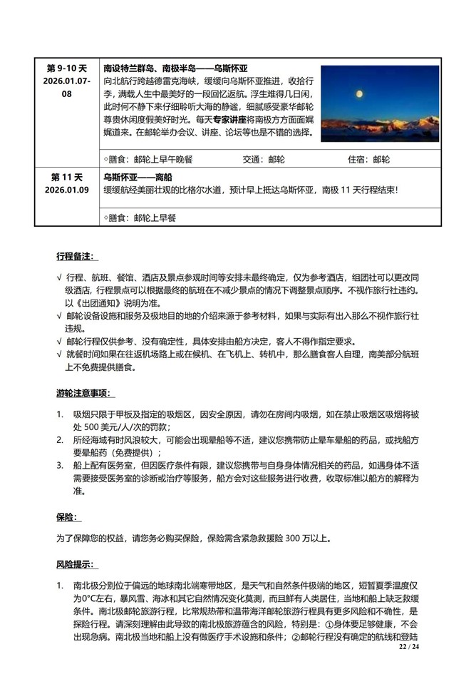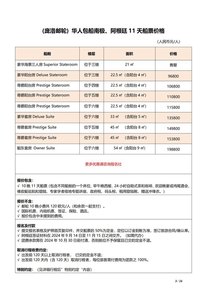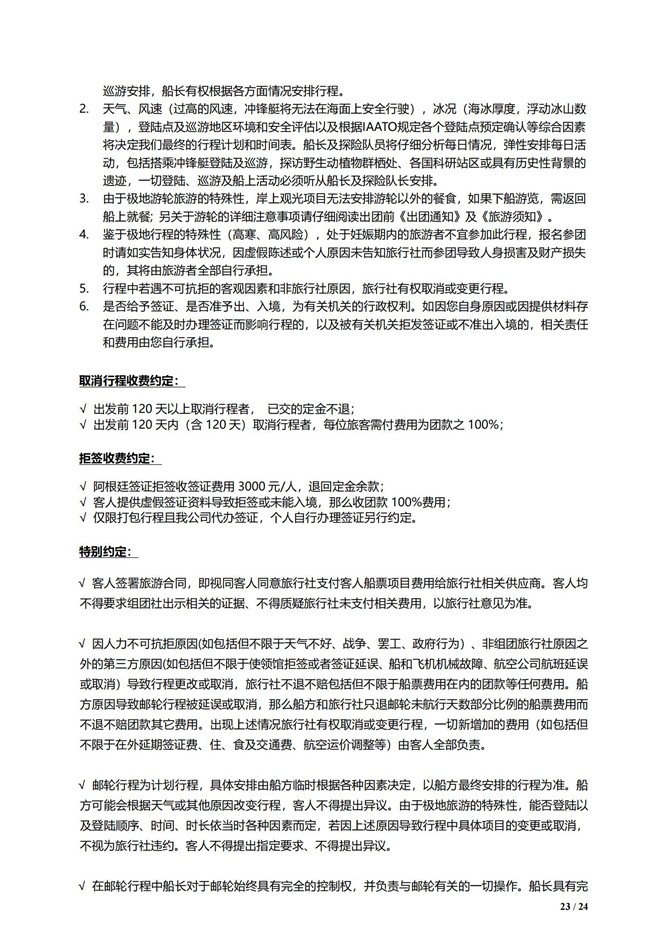 √ 团费余款需在 2024 年 10 月 30 日前付清,否则舱位不予保留且已交的定金不退。