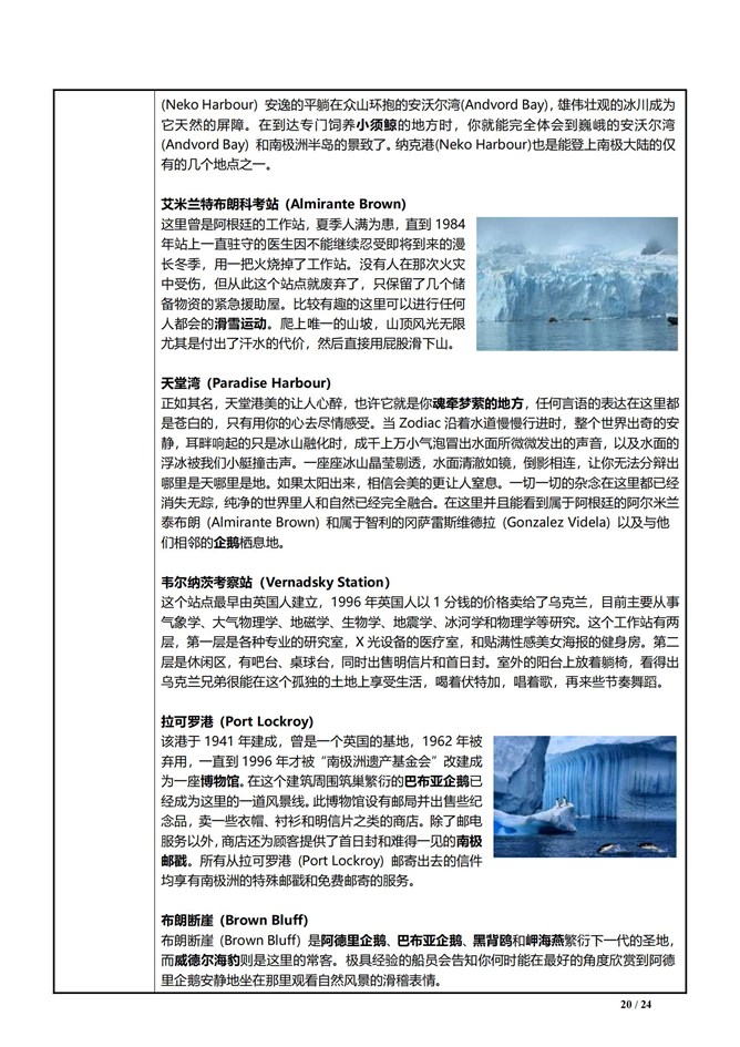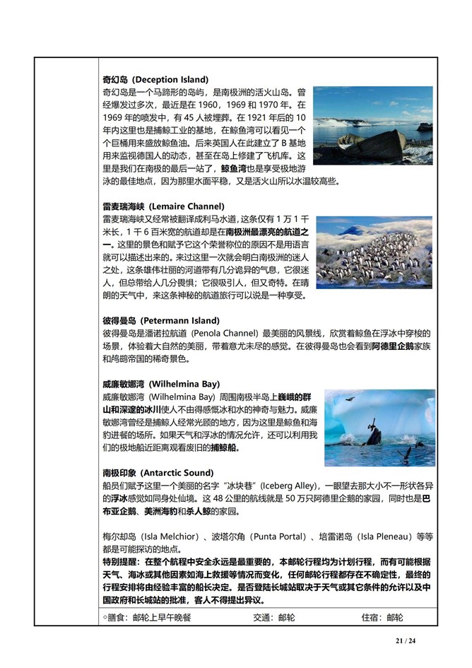 ◇精品行程。邮轮行程长达 10 晚 11 天,登陆巡游的次数更多。登陆巡游南极风景最美海岛和海湾。