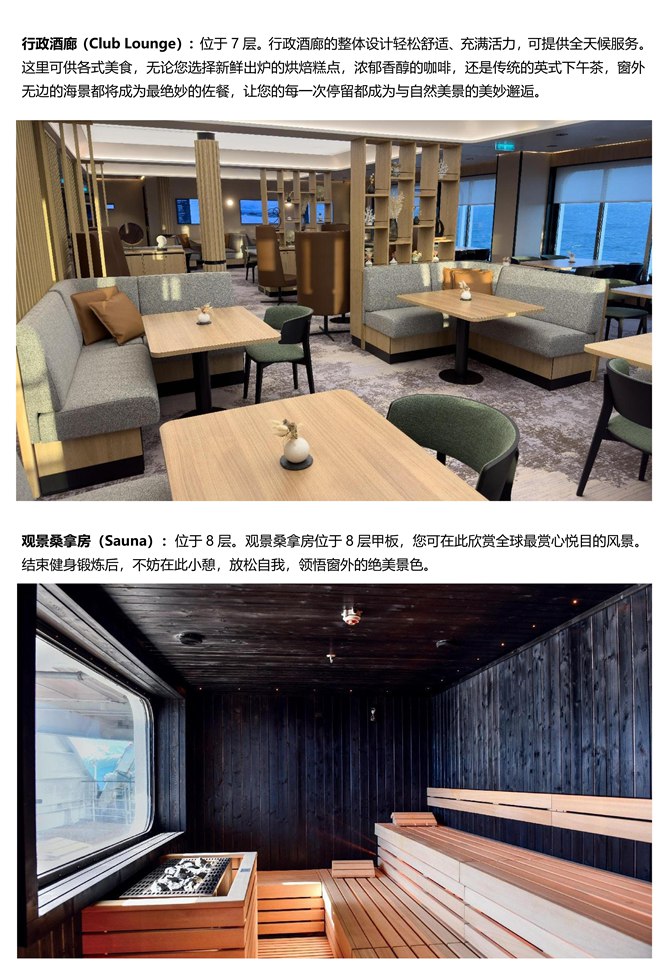√邮轮设备设施和服务及极地目的地的介绍来源于参考材料,如与实际有出入不视作旅行社违规。